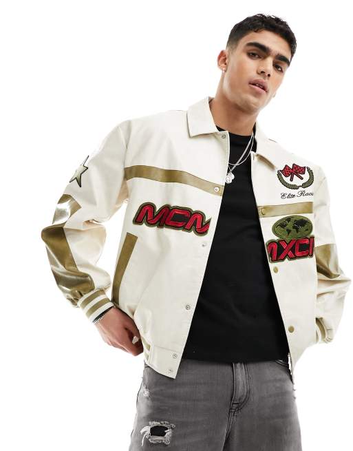 ASOS DESIGN - Giacca bomber stile motocross oversize in pelle sintetica écru