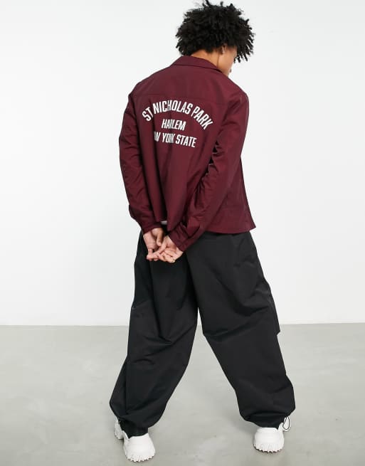 ASOS DESIGN - Giacca coach college leggera rossa con stampa sul retro