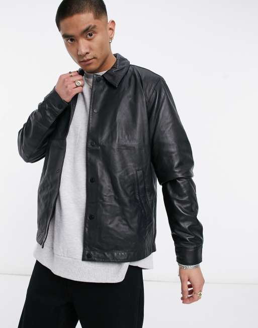 ASOS DESIGN - Giacca coach in pelle nera
