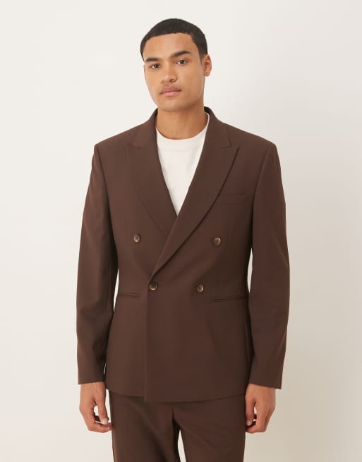 ASOS DESIGN - Giacca da abito doppiopetto slim fit marrone