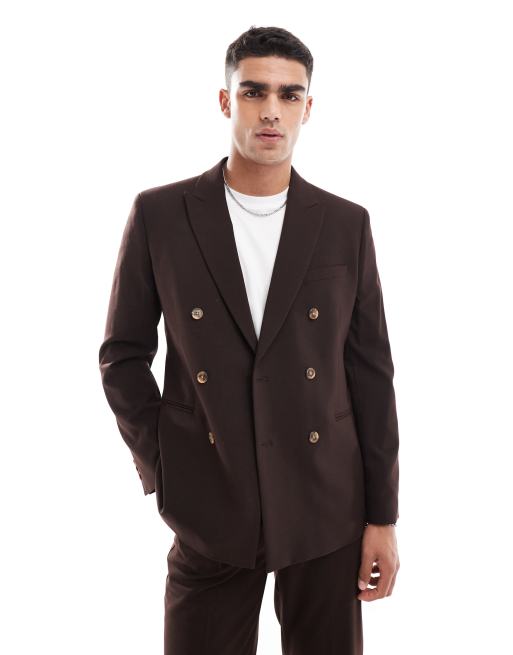 ASOS DESIGN - Giacca da abito doppiopetto slim marrone