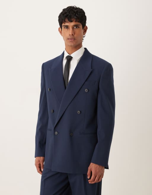 ASOS DESIGN - Giacca da abito doppiopetto squadrata vestibilità comoda color blu navy con motivo gessato metallizzato