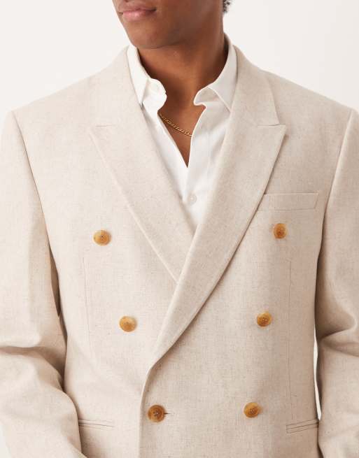 ASOS DESIGN - Giacca da abito doppiopetto vestibilità classica in misto lino beige naturale