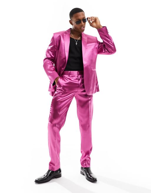 ASOS DESIGN - Giacca da abito skinny in raso rosa