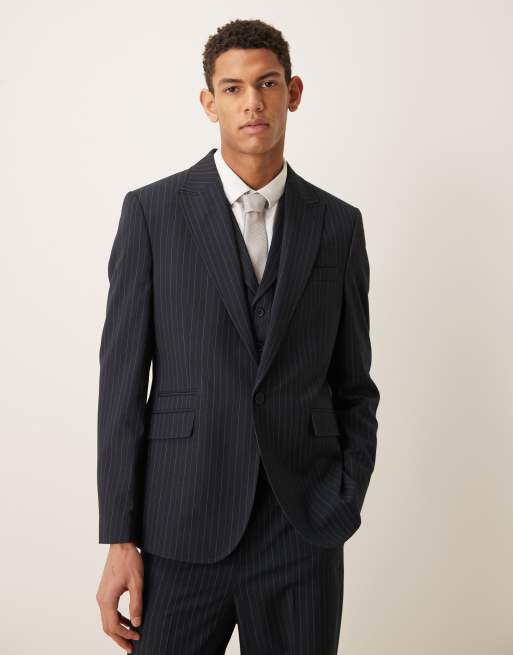 ASOS DESIGN - Giacca da abito slim blu navy gessato