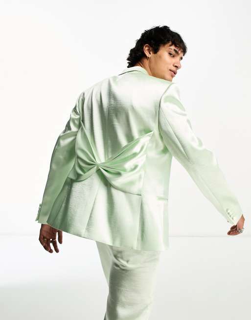 ASOS DESIGN - Giacca da abito slim in raso verde