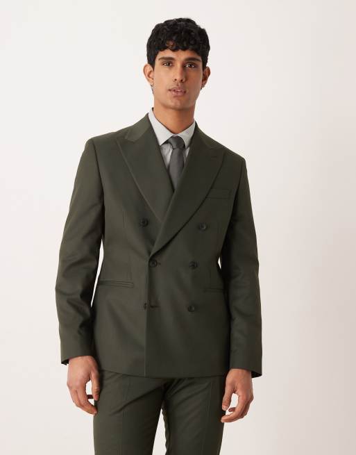 ASOS DESIGN - Giacca da abito slim in twill verde scuro