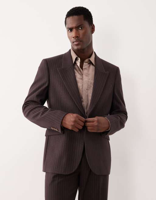 ASOS DESIGN - Giacca da abito slim marrone gessata metallizzata