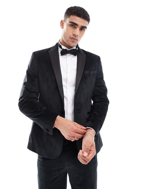 ASOS DESIGN - Giacca da abito slim stile smoking in velluto nero