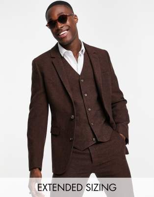 ASOS DESIGN - Giacca da abito super skinny in tweed di misto lana marrone scuro