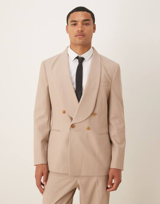 ASOS DESIGN - Giacca da abito vestibilità classica doppiopetto beige in flanella