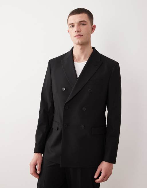 ASOS DESIGN - Giacca da abito vestibilità classica doppiopetto in twill nera