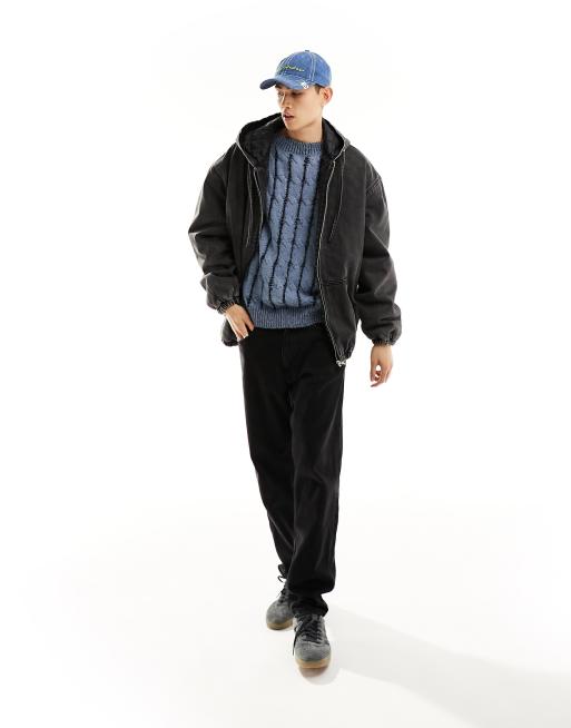 ASOS DESIGN - Giacca di jeans extra oversize nero slavato con cappuccio