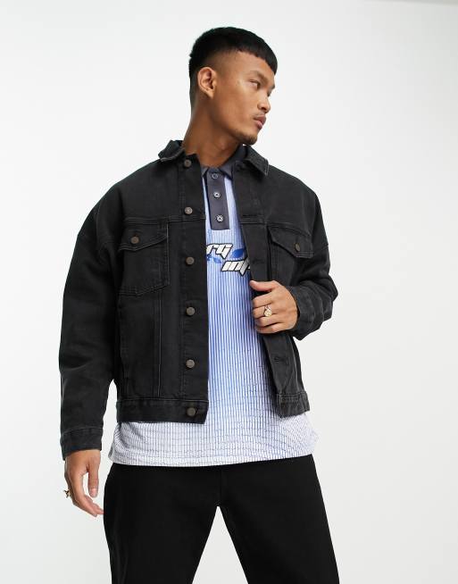ASOS DESIGN - Giacca di jeans oversize nero délavé