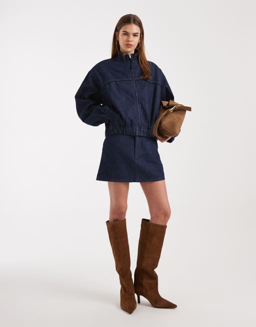 ASOS DESIGN - Giacca e minigonna in denim risciacquato in coordinato