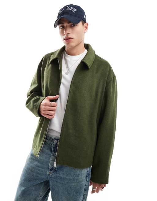 ASOS DESIGN - Giacca harrington corta oversize effetto lana kaki