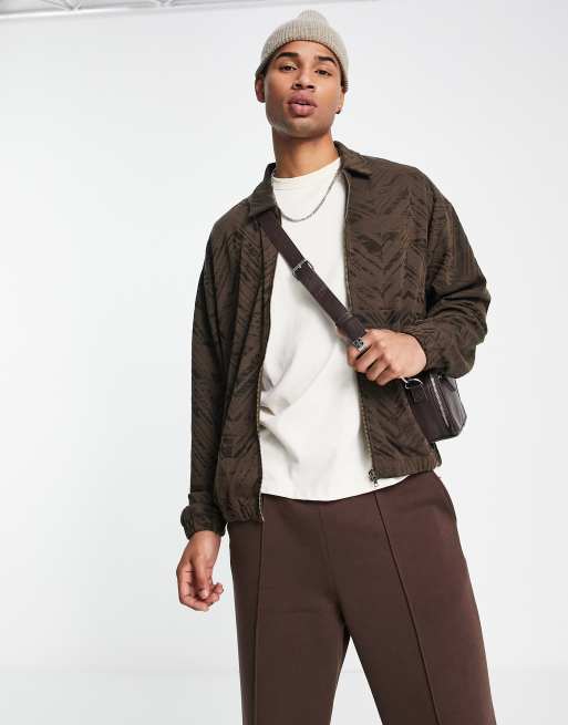 ASOS DESIGN - Giacca harrington oversize marrone jacquard