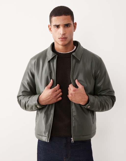 ASOS DESIGN - Giacca harrington verde in pelle sintetica