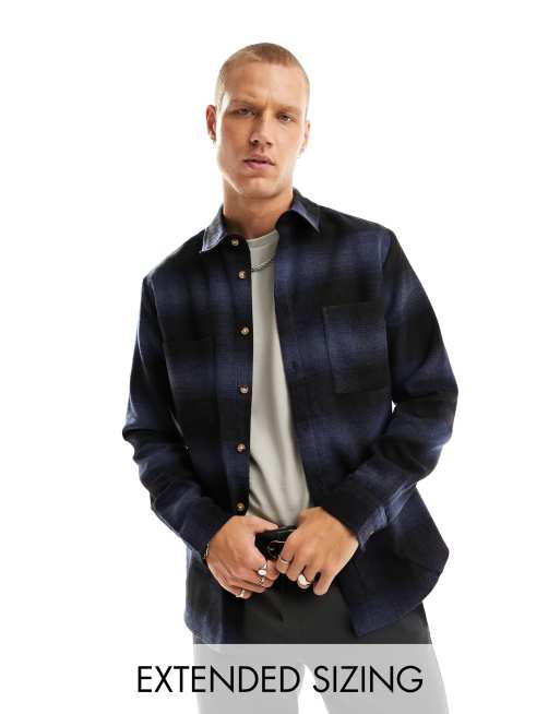 ASOS DESIGN - Giacca in misto lana blu navy a quadri sfumati