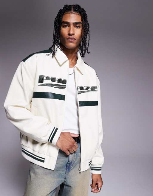 ASOS DESIGN - Giacca in pelle sintetica oversize stile motocross écru
