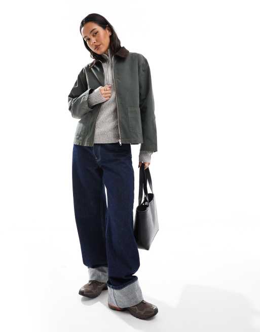 ASOS DESIGN - Giacca in tela verde con colletto a contrasto
