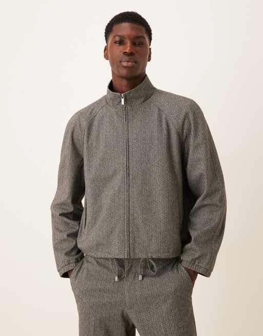 ASOS DESIGN - Giacca sportiva elegante grigia con motivo a spina di pesce in coordinato