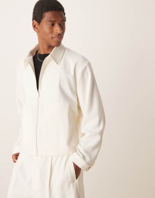 ASOS DESIGN - Giacca stile blouson oversize elegante bianca microtesturizzata in coordinato