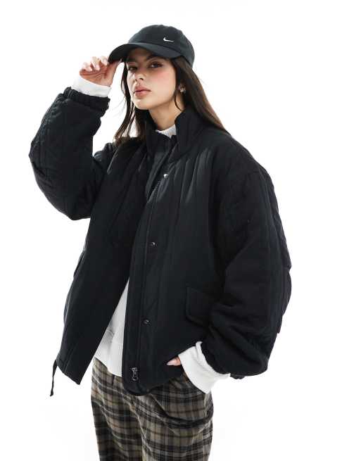 ASOS DESIGN - Giacca trapuntata nera con collo a imbuto