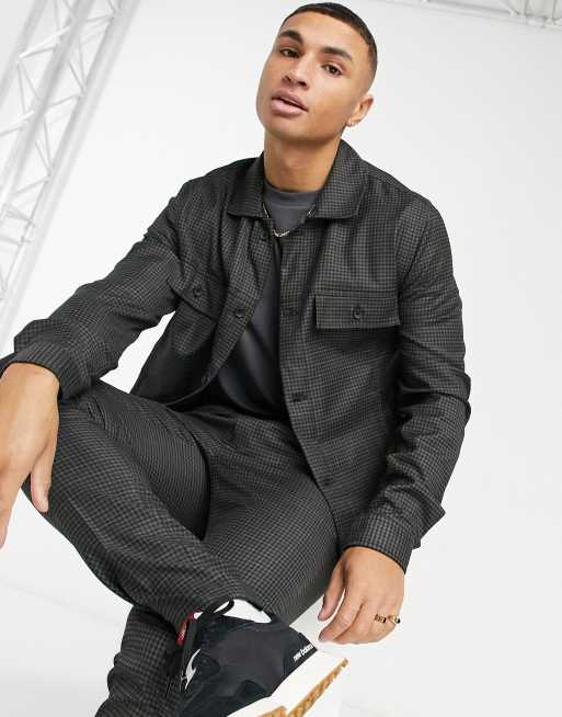 ASOS DESIGN - Giacca trucker elegante bordeaux a quadretti in coordinato