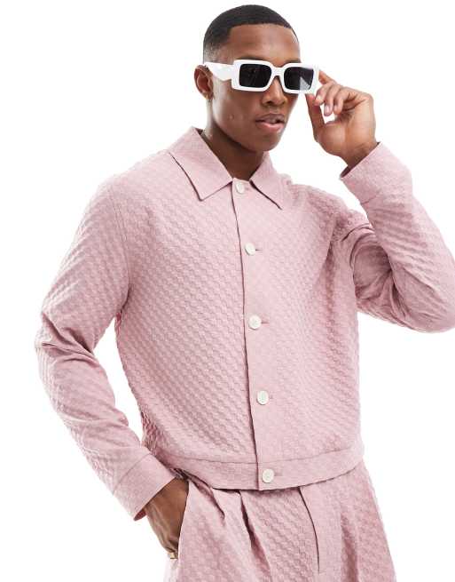 ASOS DESIGN - Giacca trucker elegante slim rosa a scacchi in coordinato