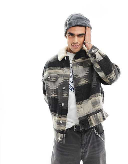 ASOS DESIGN - Giacca western oversize con colletto in pile borg e stampa azteca