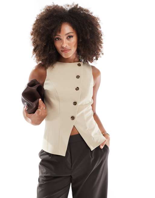 ASOS DESIGN - Gilet asimmetrico beige sartoriale