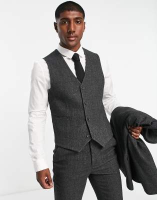 ASOS DESIGN - Gilet da abito skinny in misto lana a spina di pesce antracite