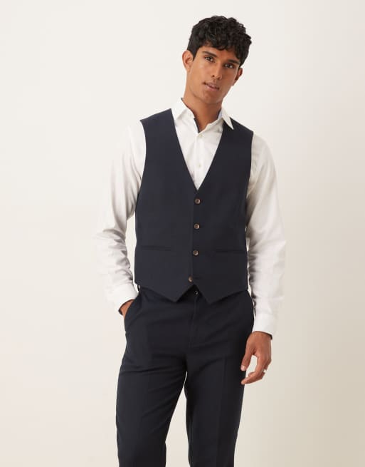 ASOS DESIGN - Gilet da abito slim fit blu navy effetto lana con motivo a spina di pesce