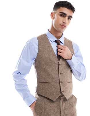 ASOS DESIGN - Gilet da abito slim in misto lana beige