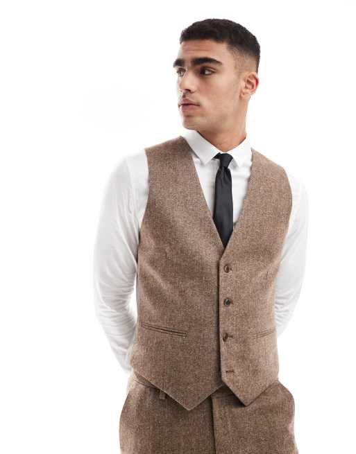ASOS DESIGN - Gilet da abito slim in misto lana marrone