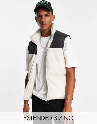 ASOS DESIGN - Gilet imbottito color pietra con carré nero