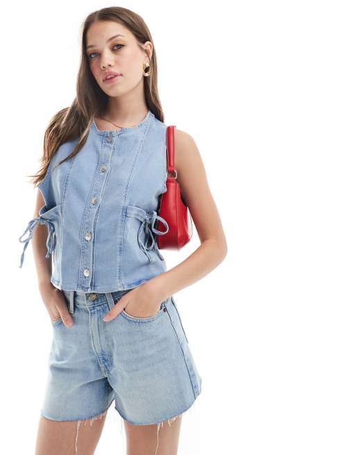 ASOS DESIGN - Gilet in denim candeggiato con fiocchi