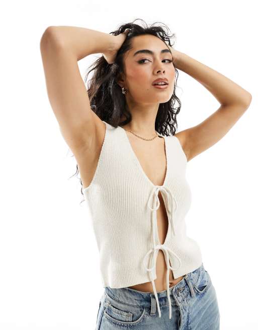 ASOS DESIGN - Gilet in maglia allacciato sul davanti color pietra
