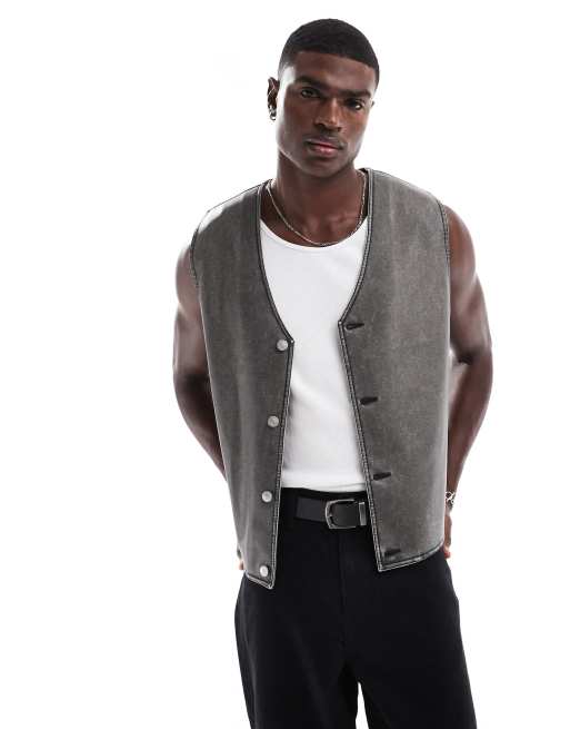 ASOS DESIGN - Gilet in pelle sintetica nero slavato
