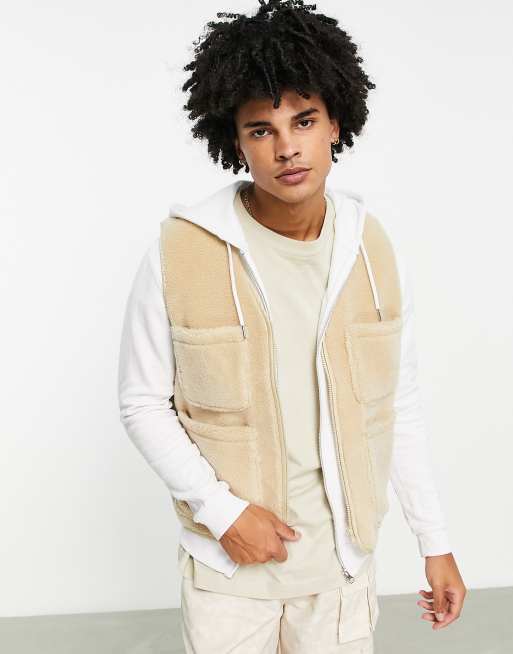 ASOS DESIGN - Gilet in pile borg beige