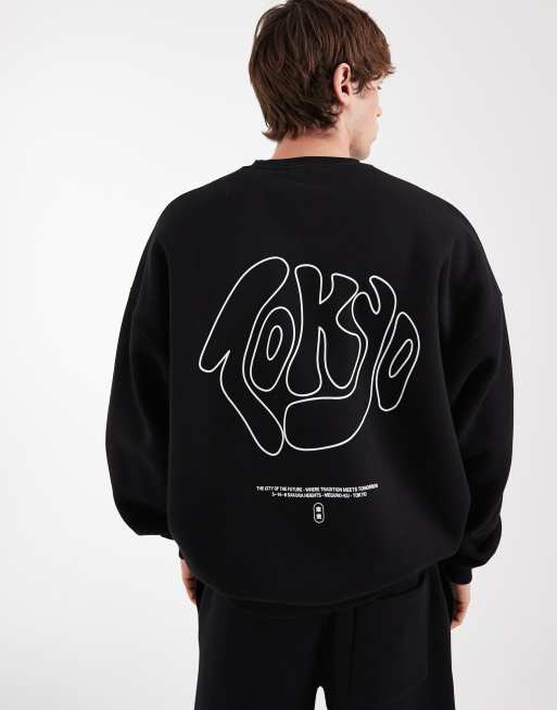 ASOS DESIGN - girocollo super oversize nera con grafica di città in coordinato