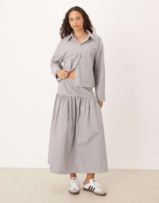 ASOS DESIGN - Gonna a ruota lunga a quadri con vita scesa