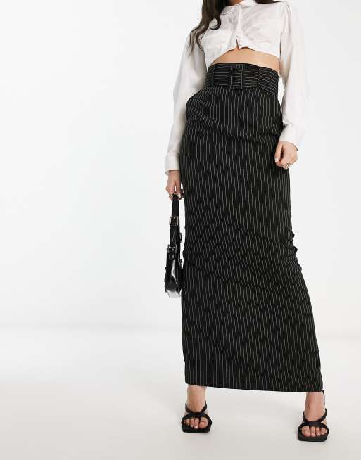 ASOS DESIGN - Gonna longuette lunga con cintura nera gessata
