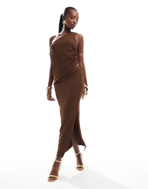 ASOS DESIGN - Gonna lunga a colonna marrone cioccolato testurizzato in coordinato