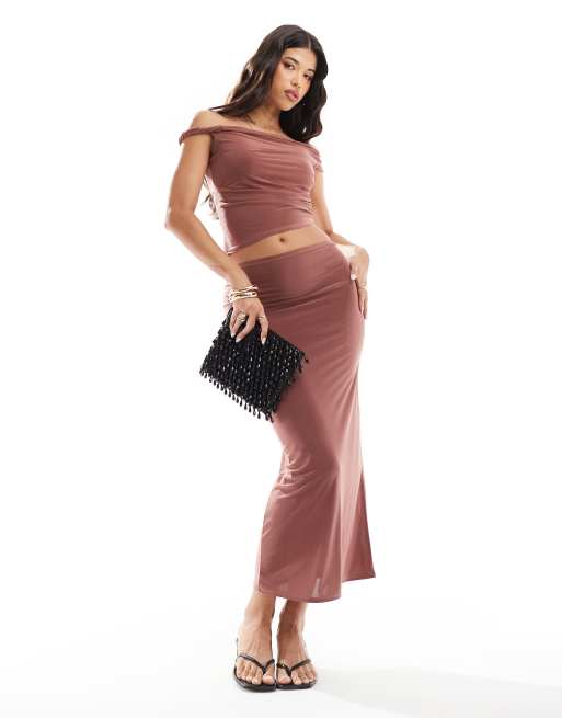 ASOS DESIGN - Gonna lunga aderente marrone in coordinato