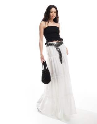 ASOS DESIGN - Gonna lunga bohémien a balze bianca con inserti in pizzo