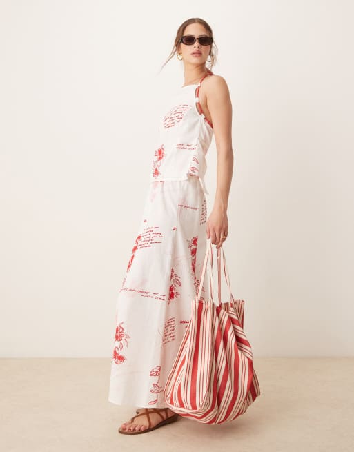 ASOS DESIGN - Gonna lunga con stampa rossa e coulisse in vita in coordinato