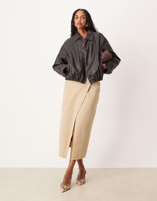ASOS DESIGN - Gonna lunga dritta a colonna beige con davanti a portafoglio