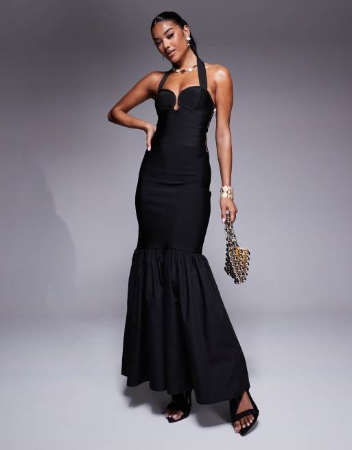 ASOS DESIGN - Gonna lunga fasciante nera con peplo in coordinato